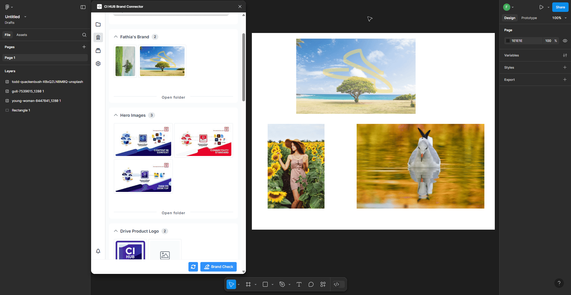 The Brand Check feature ensures that all placed assets remain compliant with brand standards. It categorizes assets as: