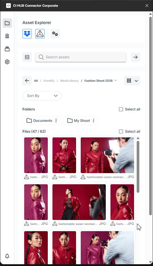 Pre-configured Assets: Curated by your DAM Admin, allowing users to find exactly what they need quickly.