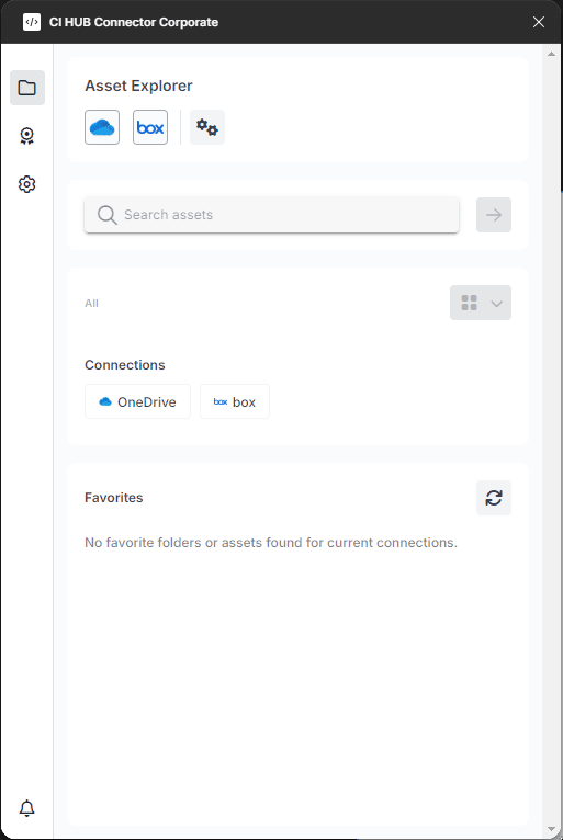 At the top of the Asset Explorer, icons represent your active connections. You can enable or disable them by clicking on their icons.