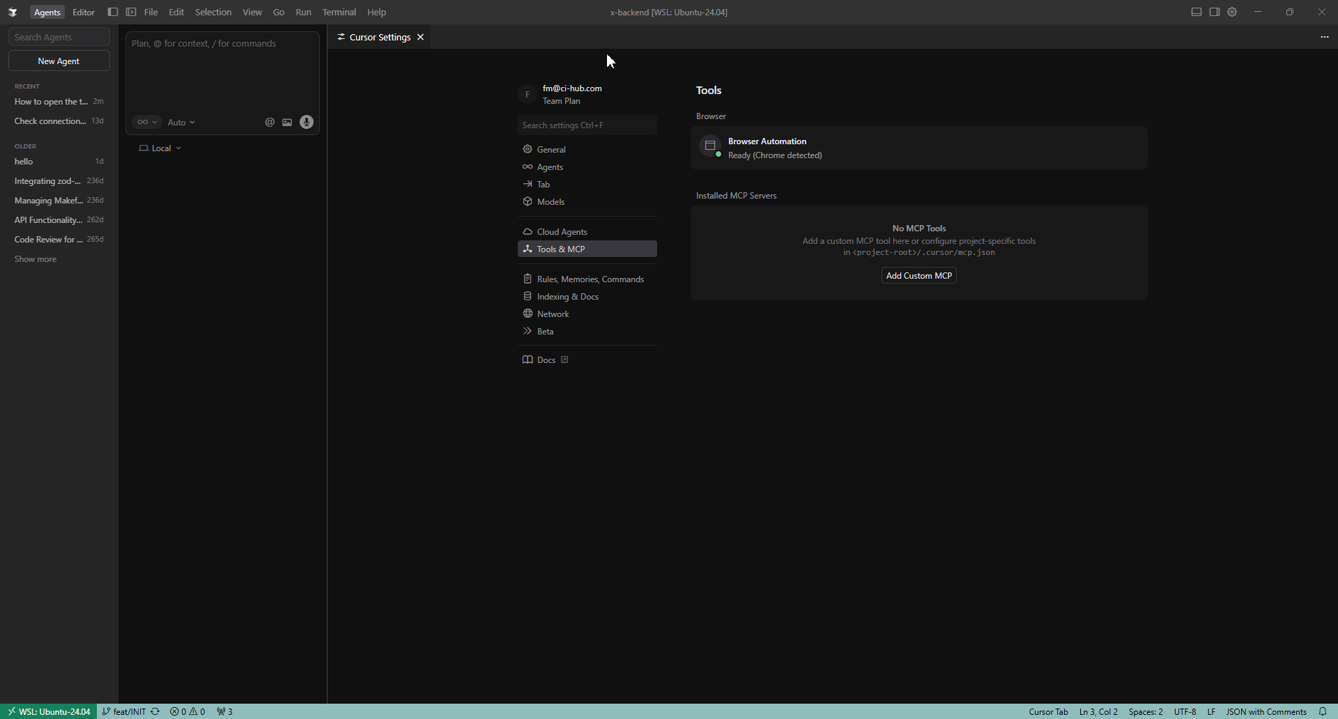 1. Open Cursor and navigate to Settings → Tools & MCP.