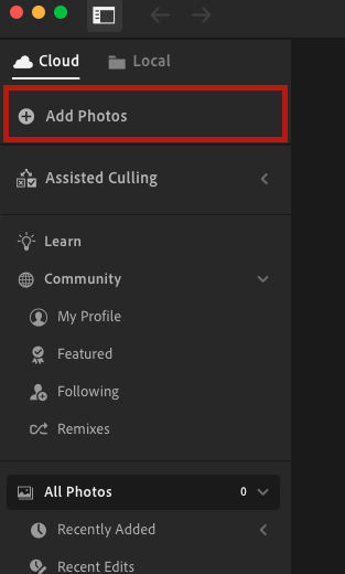 This issue typically occurs when there are no assets available in your Lightroom / Adobe Creative Cloud library.