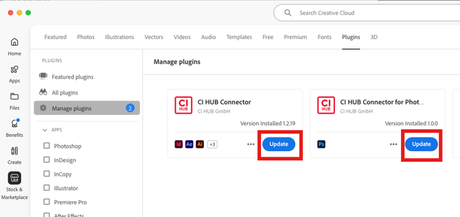 For smooth updates, we strongly recommend installing and updating the CI HUB Connector exclusively via the Adobe Creative Cloud App.